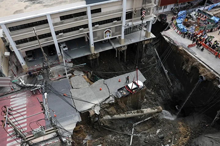Bangkok Post gazetesinin haberine göre, başkent Bangkok’da bir devlet hastanesinin önünde yol çöktü.
